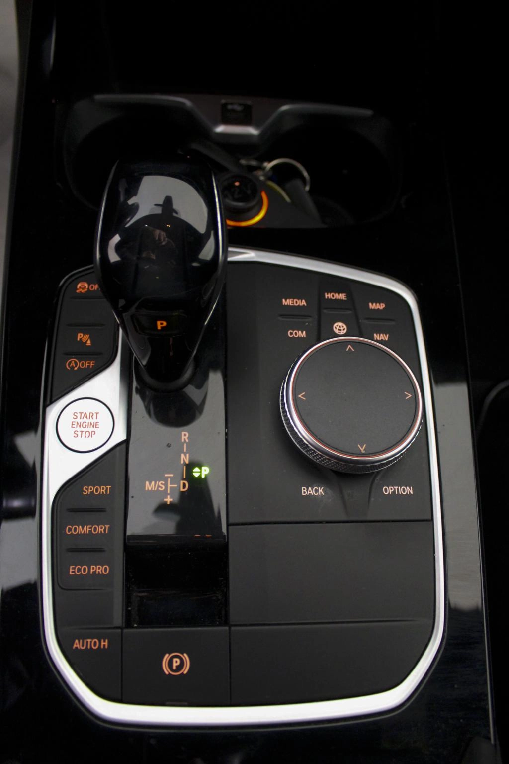 Controller iDrive nella consolle centrale con tasti per selezione diretta funzioni